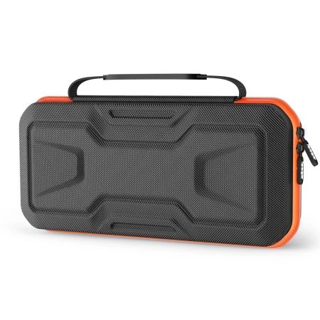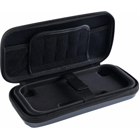 In this hard-shell black carrying case, you can safely and securely transport your favorite Nintendo Switch, Switch Lite or Switch – OLED Model game console, including the attached Joy-Con controllers in the case of the Switch and Switch – OLED Model consoles. A padded divider in the middle of the case ensures that the consoles screen does not suffer any scratches during transport, and in the mesh pocket on the other side you will find enough space for the power adapter and cards with other games. The case also includes a removable mid-base for the Switch Lite.