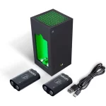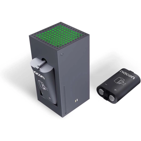 With this unique design from Nacon, reminiscent of the Xbox Series X game console, and a pair of spare batteries, you will never be stopped by dead AA batteries again. The green-lit station, which can be powered by the game console using the included USB cable, holds both batteries at once, which can then be fully charged in eight hours, while the corresponding LED indicators inform you about the current charging status. The 1400 mAh batteries are compatible with all official wireless controllers for the Xbox Series X game console