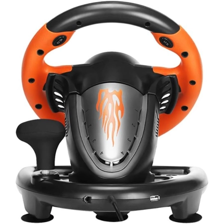 Compatible Devices: PC, PlayStation 3, PlayStation 4, Xbox One, Xbox series X, Xbox series S, Nintendo Switch, Steering angle: 180º, Steering wheel size: 26cm, Features: Ergonomic design, Dual motor vibration feedback, Linear pedals, Sim racing shift paddles, Body-shifter, Programmable buttons, Dual mode X&D-input on PC, Connection type: USB wired connection, Applicable PC system: Windows XP/7/8/10/11, Fixing method: 7 strong suction cups, a C-type clamp.