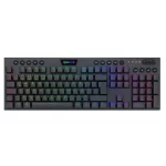 Blue Switch, Bluetooth/2.4Ghz/Wired Tri-Mode Ultra-Thin Low Profile Gaming Keyboard w/No-Lag Cordless Connection, Dedicated Media Control, 4*5 on-the-fly Macro Keys, 5 Devices Switchable, Superb RGB For Gamer, 104 Keys (Full Rollover)