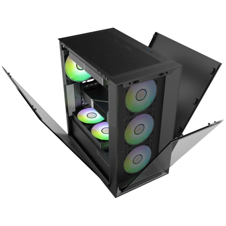 Support M/B: ATX, M-ATX, FAN : Liquid 360MM at Front, 240mm at Top, VGA Lenght: 360MM Support GPU 40 Series, CPU Cooler Height: 185mm, Sided Temper Glass, Color : Black